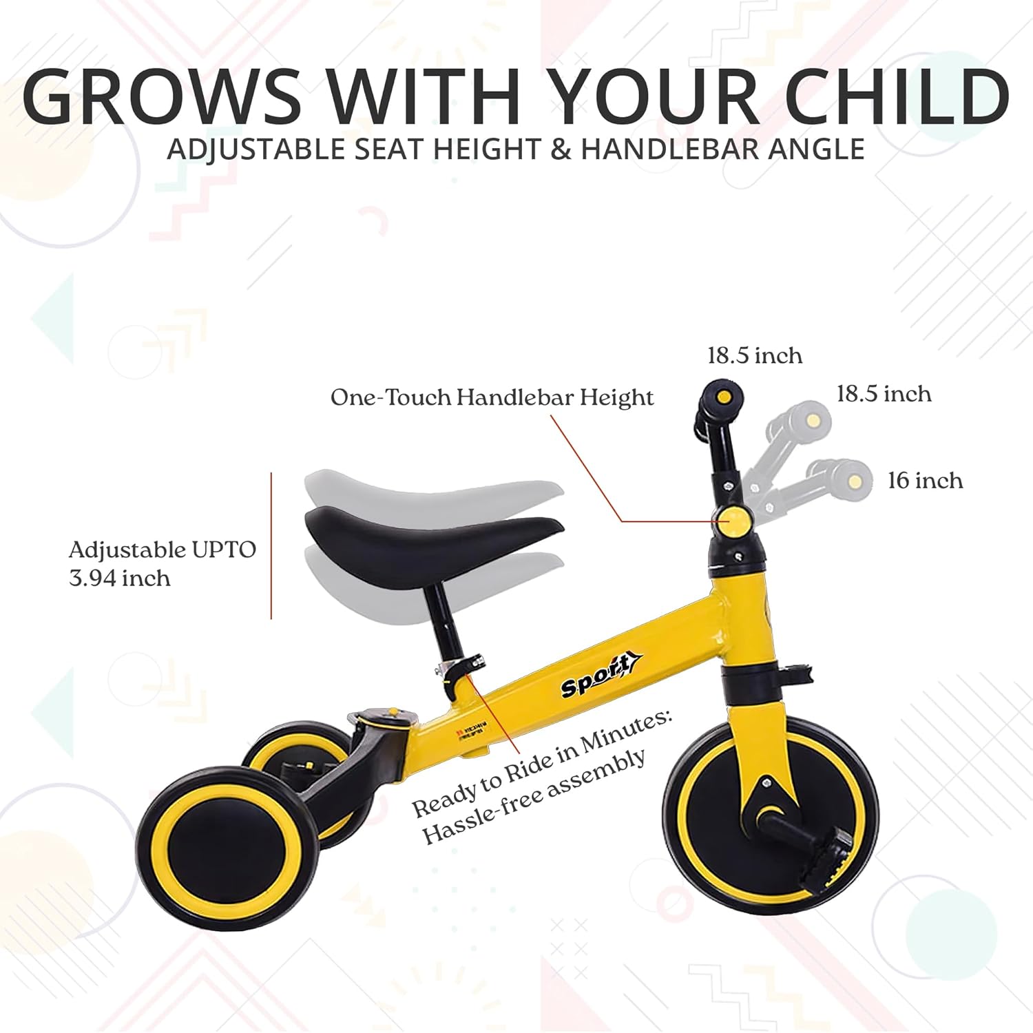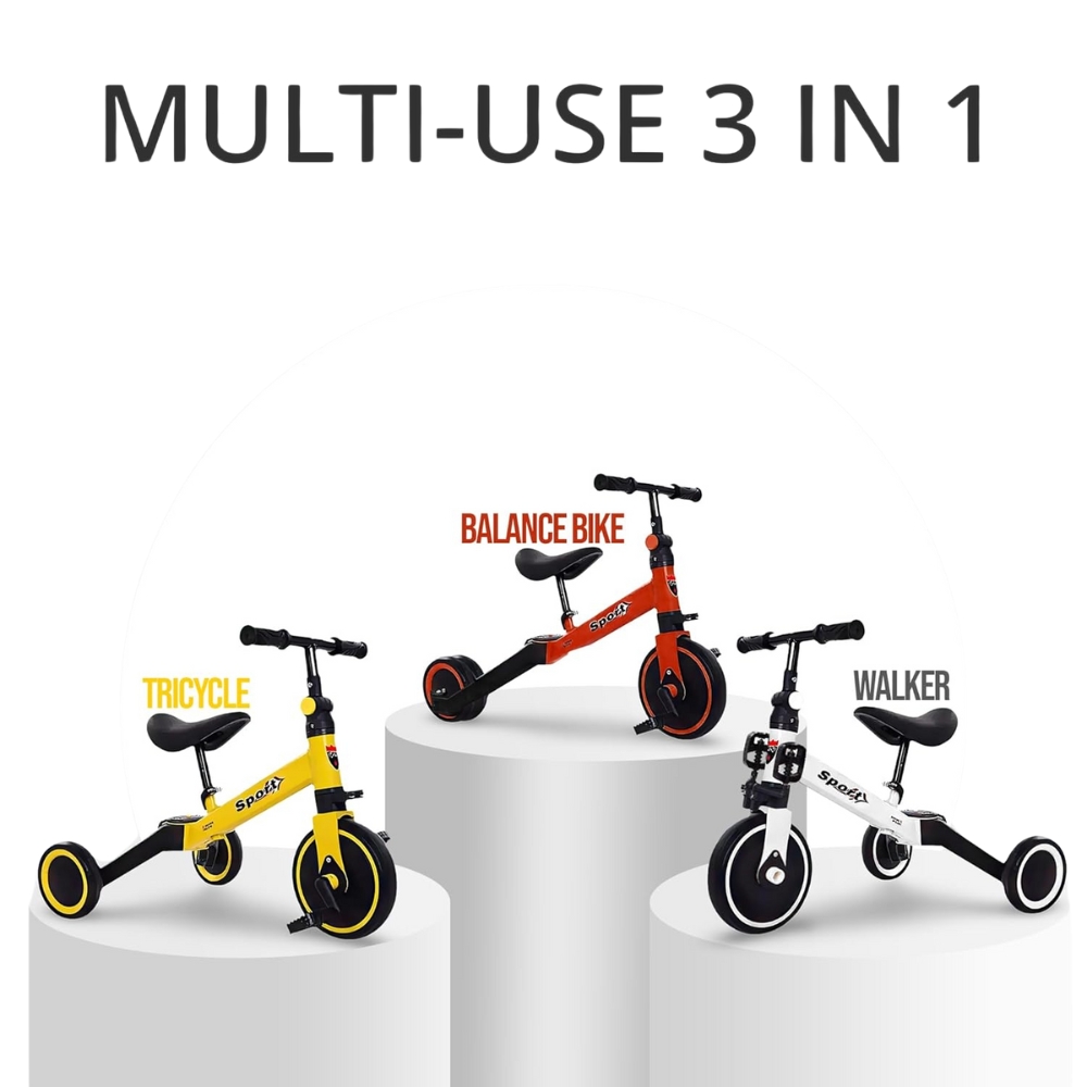 3-in-1 Toddler Tricycle – Adjustable Seat, 3-Wheel Balance Bike for Kids 1-4 Years, Indoor/Outdoor Ride for Boys & Girls