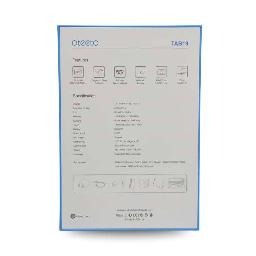TAB 19 tablet/10.1 Inch IPS LCD/Octa Core 1.6GHz/Android 15/5G Connectivity/8000 mah battery/12GB + 512 GB/8 Mp front + 13 Mp rear camera/keyboard