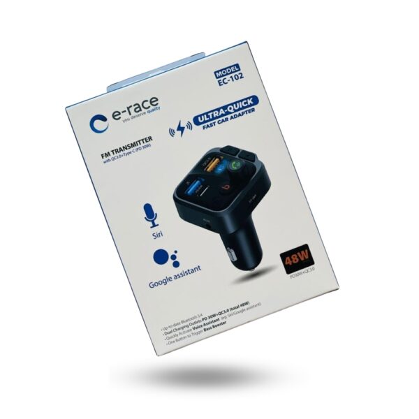 E-Race ULTRA-QUICK FAST CAR ADAPTER | FM TRANSMITER | EC-102 | PD 30W | SIRI | GOOGLE ASSIST | 48W | 1YEAR WARRANTY